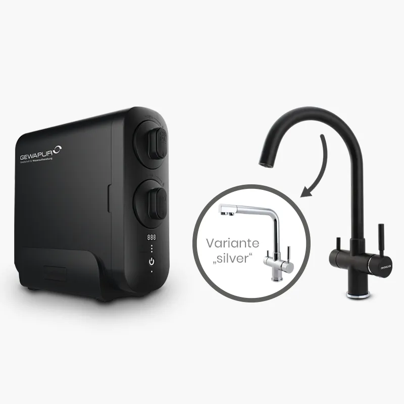 Reines Osmosewasser, gefiltertes Wasser und normales Leitungswasser – alles aus einem einzigen Wasserhahn. Aufeinander abgestimmt und einfach zu installieren.